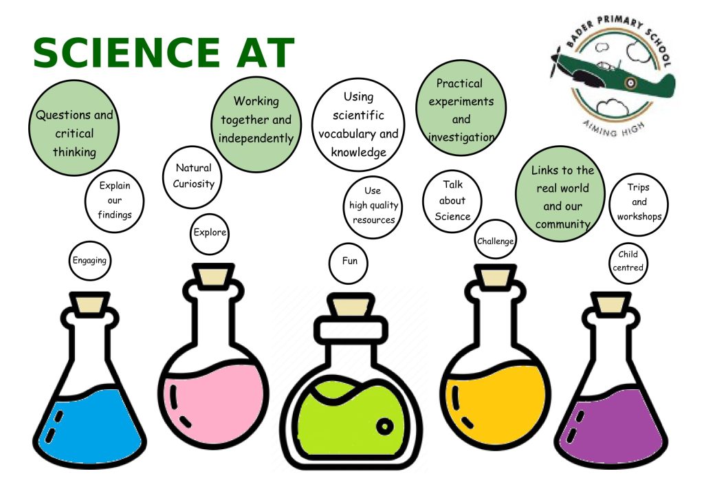 The Science curriculum at Bader Primary school is designed to ensure that all children develop scientific knowledge, skills and conceptual understanding through the teaching of biology, physics and chemistry. At Bader Primary school we believe that a high quality science education provides the foundations for understanding the world. We understand that children are naturally curious and we encourage this inquisitive nature through our Science lessons. We encourage children to focus on the work of great scientists, to use and apply a growing bank of scientific vocabulary and to understand how science can be used to explain what is occurring, predict how things will behave, and analyse causes. All children are exposed to high quality teaching and learning experiences, which allow them to explore their outdoor environment and locality, thus developing their scientific enquiry and investigative skills.
