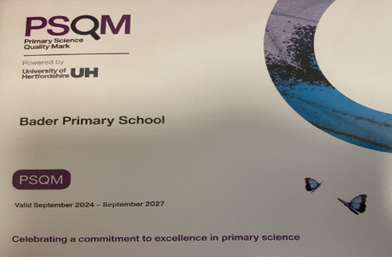 We are delighted to say that we have been awarded the Primary Science Quality Mark. The PSQM is led by the Primary Science Teaching Trust.